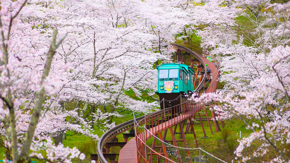 Monorail and Cherry Blossoms